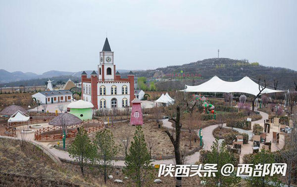 站在南溝村生態(tài)園最高處的觀景臺俯瞰景區(qū),紅色小樓錯落有序、旁邊水庫綠水盈盈、遠處山峰層層疊疊、成片的蘋果園劃出整齊的曲線,五顏六色的游樂設(shè)施裝點著黃土高原,讓人驚嘆山溝溝里竟然還有這樣養(yǎng)眼的好去處。