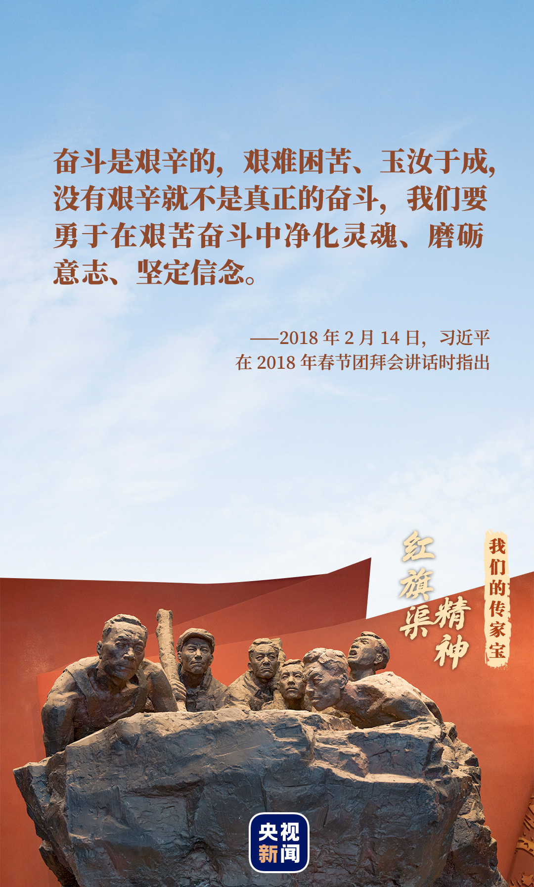 20世紀60年代,為結(jié)束河南林縣十年九旱的歷史,10萬英雄兒女在萬仞壁立、千峰如削的太行山上建成了全長1500公里的“人工天河”——紅旗渠,鍛造了紅旗渠精神。