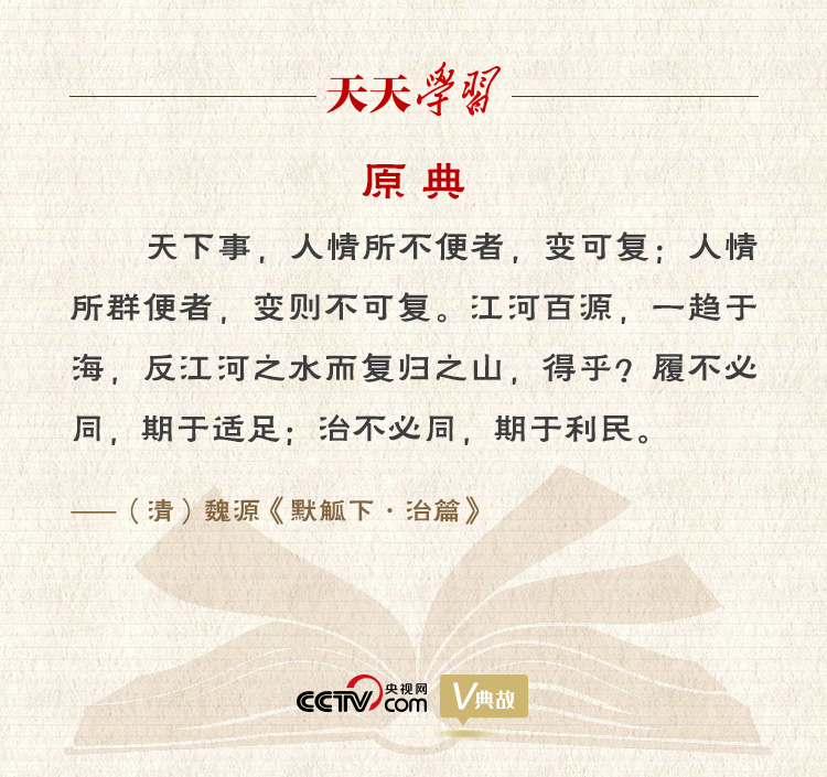 《默觚》是中國近代思想家魏源的哲學(xué)著作。魏源從歷史自身的“自變性”去探求歷史發(fā)展的驅(qū)動(dòng)力,認(rèn)為歷史變化發(fā)展的標(biāo)準(zhǔn)是“便民”。為此,他用生動(dòng)的比喻加以說明:“履不必同,期于適足;治不必同,期于利民。”意思是說,每一個(gè)人的鞋子大小不必相同,關(guān)鍵是要適合自己的腳;每個(gè)國家的治理方法不必雷同,關(guān)鍵是要有利于人民。