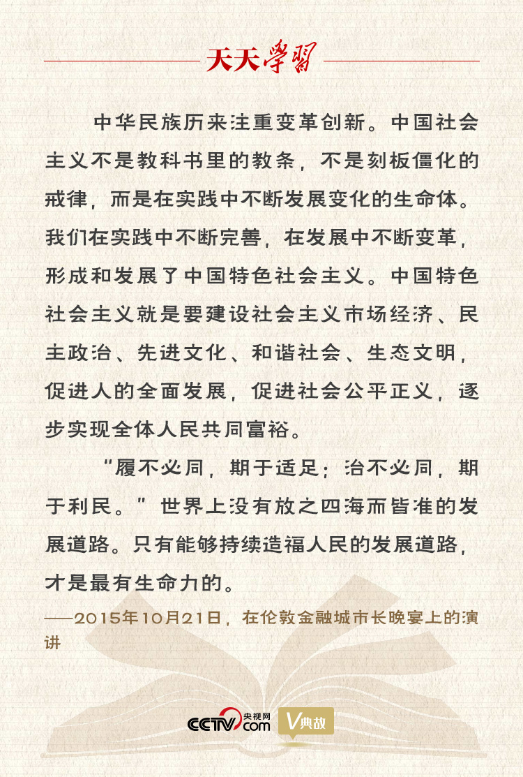 近代以后,中國飽受戰(zhàn)亂動(dòng)蕩,歷經(jīng)長達(dá)一個(gè)多世紀(jì)的磨難。100多年前,中國人民開始“睜眼看世界”,努力探尋救國救民的道路。中國民主革命的先行者孫中山先生曾經(jīng)到英國求學(xué)。在經(jīng)歷君主立憲制、議會(huì)制、總統(tǒng)制等的失敗嘗試后,中國最終選擇了社會(huì)主義道路。這是歷史的選擇、人民的選擇。中國共產(chǎn)黨以馬克思主義為指導(dǎo),領(lǐng)導(dǎo)中國人民經(jīng)過28年的浴血奮戰(zhàn)最終取得革命勝利、實(shí)現(xiàn)民族獨(dú)立和人民解放。新中國成立以來,我國社會(huì)各方面都發(fā)生了巨大變化,尤其是改革開放以來,我國經(jīng)濟(jì)快速發(fā)展,綜合國力進(jìn)一步增強(qiáng),人民生活不斷改善,社會(huì)各項(xiàng)事業(yè)全面進(jìn)步。社會(huì)主義在中國顯示出蓬勃生機(jī)和強(qiáng)大活力,中國用幾十年時(shí)間走完了發(fā)達(dá)國家?guī)装倌曜哌^的發(fā)展歷程。這一切充分說明,中國人民正走在正確的道路上。
