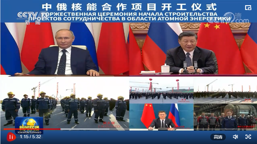 聯(lián)播+“今年是《中俄睦鄰友好合作條約》簽署20周年。我同普京總統(tǒng)商定,將在更高水平、更廣領(lǐng)域、更深層次推進(jìn)雙邊關(guān)系向前發(fā)展。”5月19日,習(xí)近平主席在北京通過視頻連線,同俄羅斯總統(tǒng)普京共同見證兩國核能合作項目——田灣核電站和徐大堡核電站開工儀式。