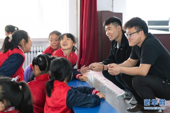 在黑龍江省安達(dá)市任民鎮(zhèn)中心小學(xué),“村里的孩兒”音樂(lè)班的孩子結(jié)束中午的合唱訓(xùn)練后和老師交流(5月25日攝)。新華社記者 謝劍飛 攝
