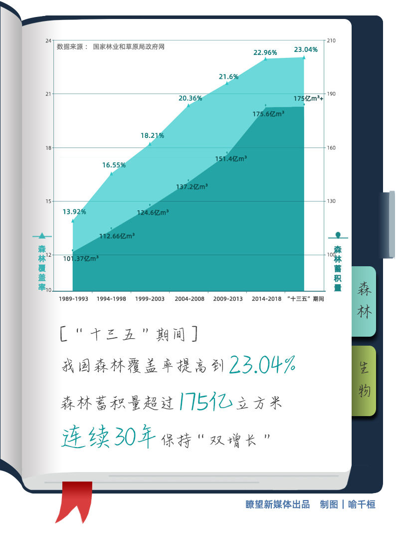 三北防護林、天然林保護、退耕還林還草等一系列重大生態(tài)工程深入推進。“十三五”期間,我國森林覆蓋率提高到23.04%,森林蓄積量超過175億立方米,連續(xù)30年保持“雙增長”,成為森林資源增長最多的國家。