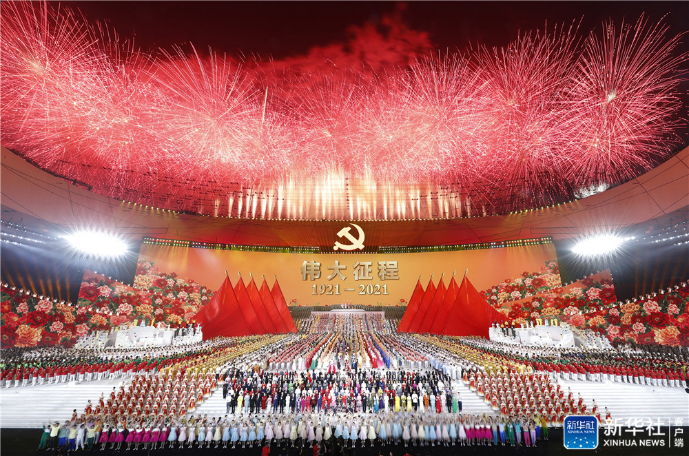 6月28日晚,慶祝中國共產(chǎn)黨成立100周年文藝演出《偉大征程》在國家體育場盛大舉行。新華社記者 黃敬文 攝