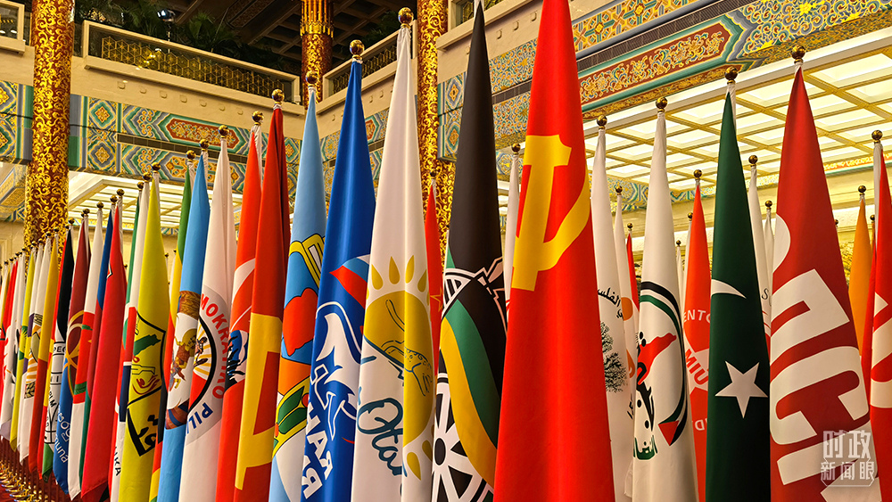 △會場上各個政黨黨旗旗陣。(總臺央視記者石丞拍攝)