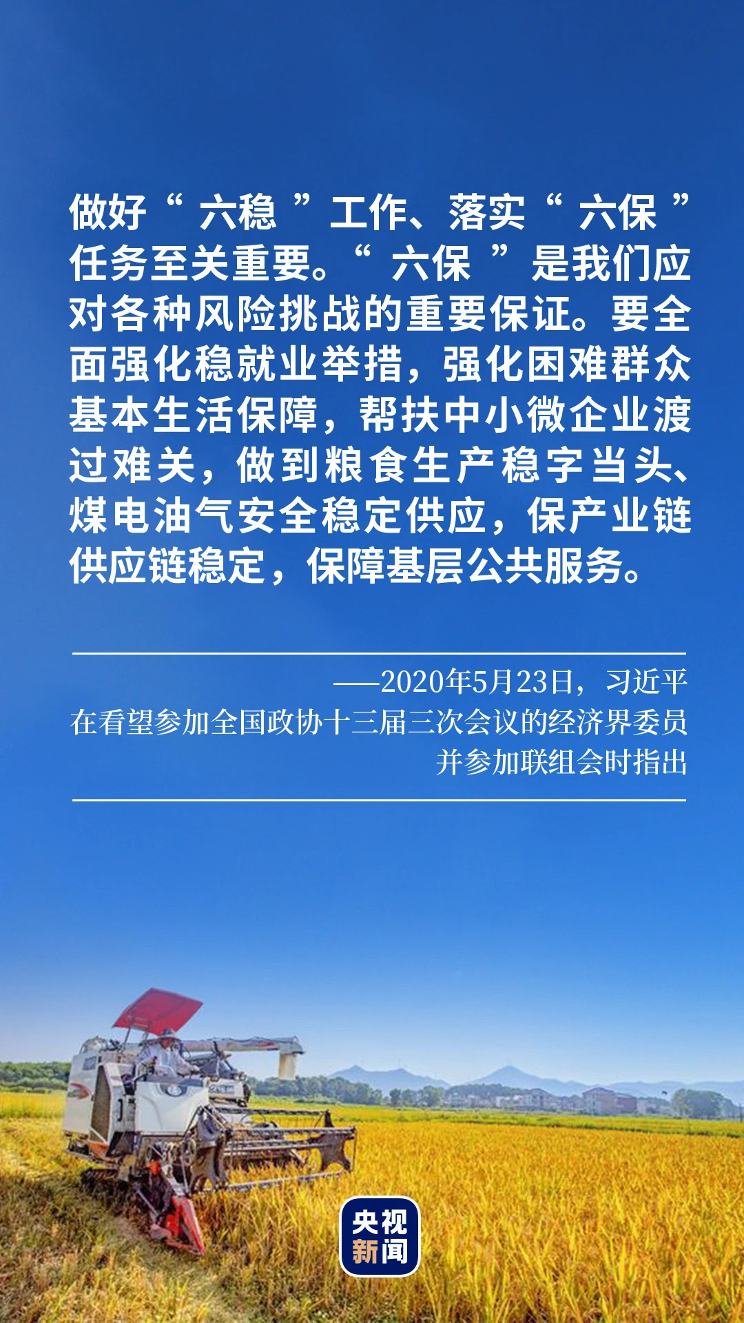 扎實做好“六穩(wěn)”工作、全面落實“六保”任務,關系經(jīng)濟發(fā)展和社會穩(wěn)定大局。面對常態(tài)化疫情防控與經(jīng)濟社會發(fā)展雙重任務,以習近平同志為核心的黨中央運籌帷幄、沉著應對,強化問題導向、夯實底線思維、彰顯民生情懷。