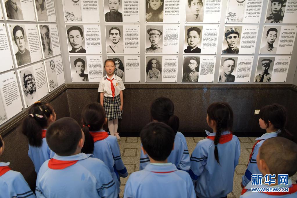 在井岡山革命烈士陵園,“小紅軍宣講團(tuán)”的成員周煜菡給前來(lái)參觀研學(xué)的學(xué)生們進(jìn)行義務(wù)講解(5月12日攝)。新華社記者 彭昭之 攝