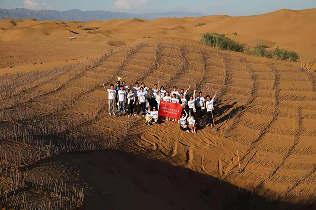 了解到這些后,他和同學(xué)立刻決定加入到這項工作當(dāng)中,十個人一道,坐了一天一夜的綠皮火車,又經(jīng)過6小時的汽車顛簸,來到了大漠深處,通過制作麥草方格治理荒漠,沒想到這一去,在之后的每年夏天,他們還帶領(lǐng)了更多的志愿者來到這個地方。他們都有一個共同的信念——“直到風(fēng)沙止步”。