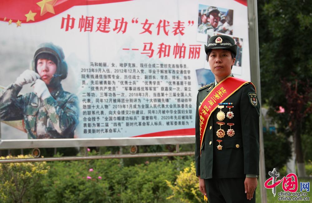 2020年,在中國人民解放軍建軍93周年之際,中央宣傳部、中央軍委政治工作部聯(lián)合發(fā)布13位“最美新時代革命軍人”。來自新疆軍區(qū)某合成團坦克二連政治指導員馬和帕麗獲此稱號。