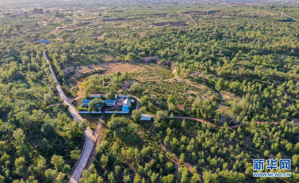 這是2020年9月7日在內(nèi)蒙古鄂爾多斯市烏審旗毛烏素沙地拍攝的一處治沙站(無人機照片)。 新華社記者 連振 攝