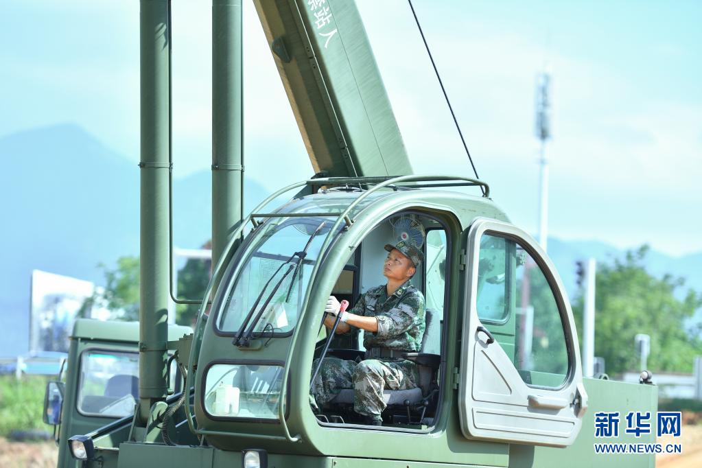 戰(zhàn)略支援部隊(duì)某大隊(duì)一級(jí)軍士長(zhǎng)高玉華操作工程機(jī)械(7月23日攝)。 新華社記者 陳澤國(guó) 攝