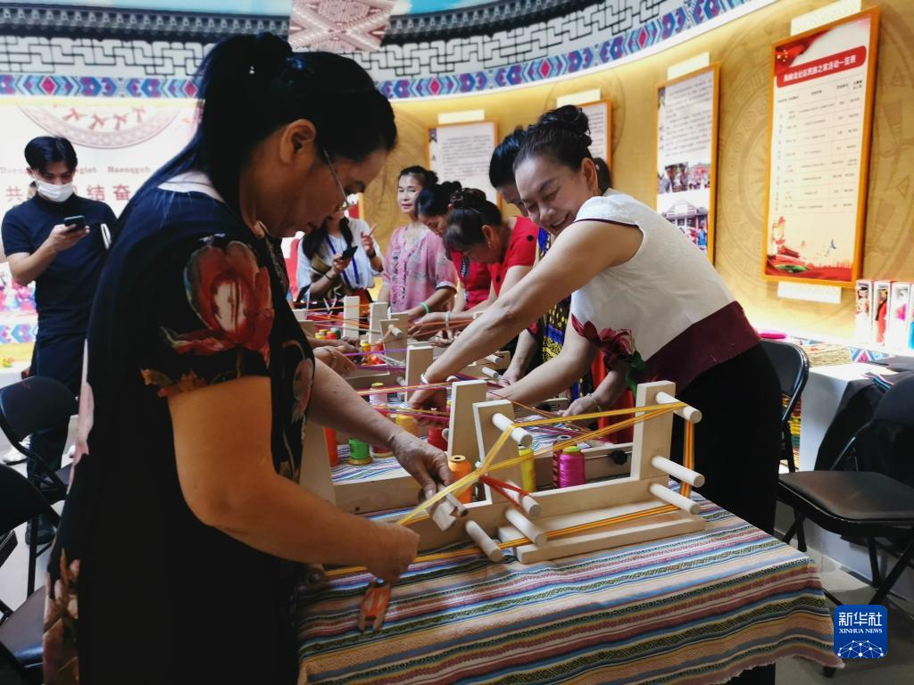 走進(jìn)廣西南寧市青秀區(qū)鳳嶺北社區(qū)民族之家,10多位居民正在用簡易織機(jī)制作壯錦。“社區(qū)每月都會舉辦繡球制作、十字繡、剪紙等活動(dòng),我在這里生活了8年,早已把社區(qū)各民族同胞當(dāng)成家人。”壯族居民譚艷春說。