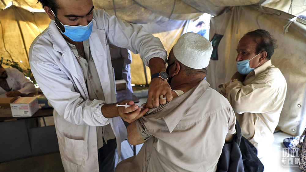△2021年7月11日,阿富汗喀布爾,當(dāng)?shù)孛癖娊臃N新冠疫苗。(圖/視覺中國)