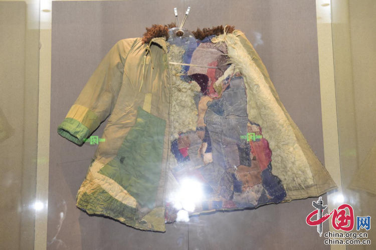 “大家看,這是八師一二一團(tuán)第一代軍墾戰(zhàn)士王德明的軍大衣,這件軍大衣上面一共有著296塊補(bǔ)丁?,F(xiàn)如今,它既是國(guó)家一級(jí)革命文物,也是我們博物館的鎮(zhèn)館之寶。在當(dāng)年進(jìn)疆初期,軍墾戰(zhàn)士們?yōu)榱斯?jié)約資金用于新疆第一批工業(yè)建設(shè),將一年發(fā)一套的軍大衣改為兩年發(fā)一套、三年發(fā)一套,把已經(jīng)磨爛的軍裝縫縫補(bǔ)補(bǔ)了數(shù)次,展現(xiàn)出軍墾戰(zhàn)士們吃苦耐勞、無私無畏的奉獻(xiàn)精神。”在新疆兵團(tuán)軍墾博物館二樓展廳,講解員張楠指著一件里里外外補(bǔ)滿不同顏色補(bǔ)丁的軍大衣介紹道。
