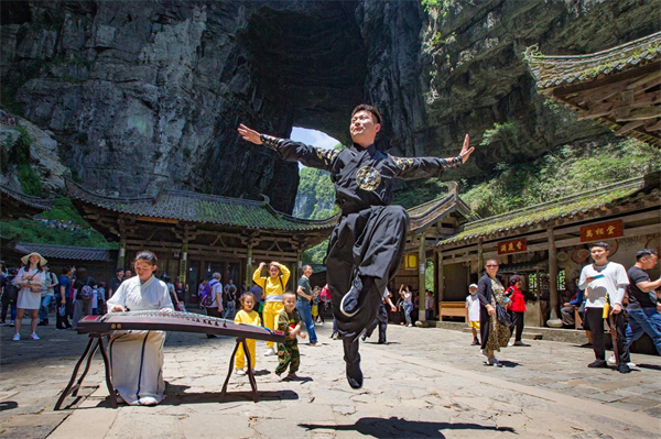 作為國(guó)內(nèi)熱門(mén)的影視取景地,武隆憑借獨(dú)特的自然風(fēng)光,吸引了包括《滿(mǎn)城盡帶黃金甲》、《變形金剛4》、《爸爸去哪兒2》、《三生三世十里桃花》、《我們十七歲》等眾多影視及綜藝節(jié)目到此拍攝取景,現(xiàn)已成為重慶旅游的文化名片。鬼斧神工的自然景觀,加上濃郁的影視文化氛圍,讓《尋夢(mèng)仙山》沉浸式劇本殺更新奇和神秘。國(guó)慶出發(fā)去武隆玩“劇本殺”,讓我們拭目以待吧!