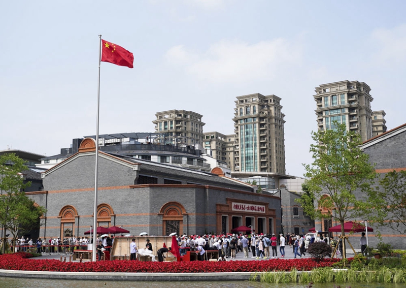 △觀眾排隊(duì)進(jìn)入位于上海的中共一大紀(jì)念館參觀(2021年6月12日攝)。