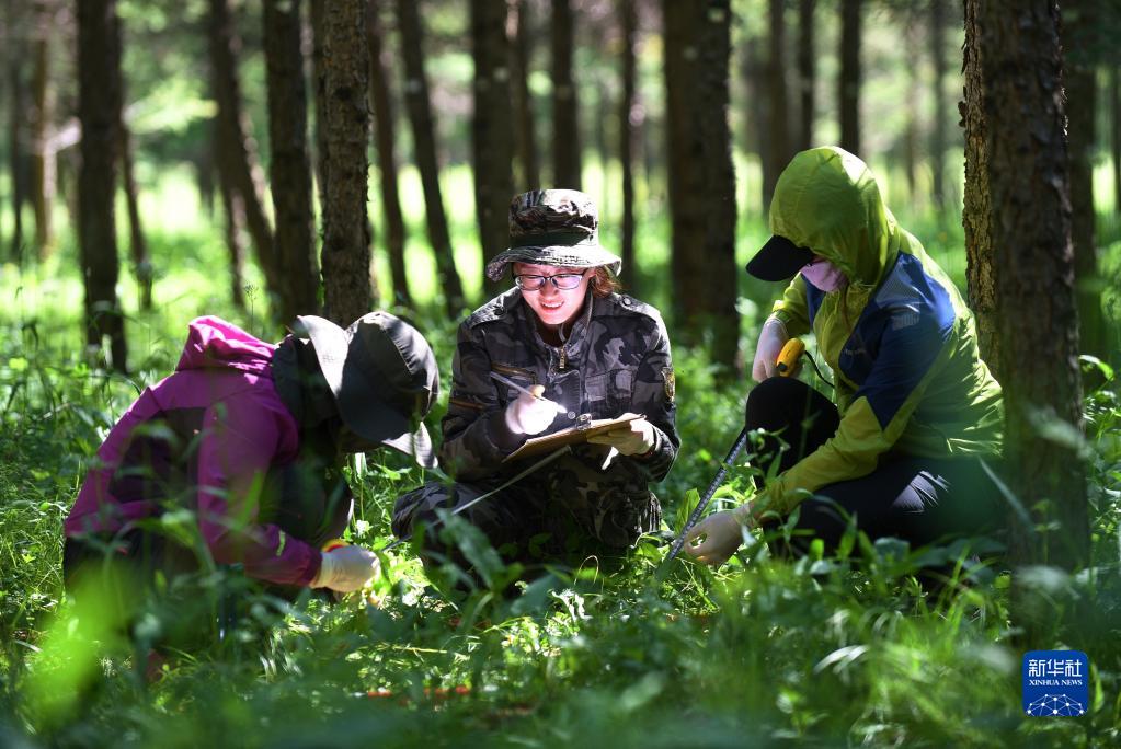 工作人員在河北塞罕壩機(jī)械林場采集數(shù)據(jù)(2017年7月12日攝)。新華社記者 王曉 攝