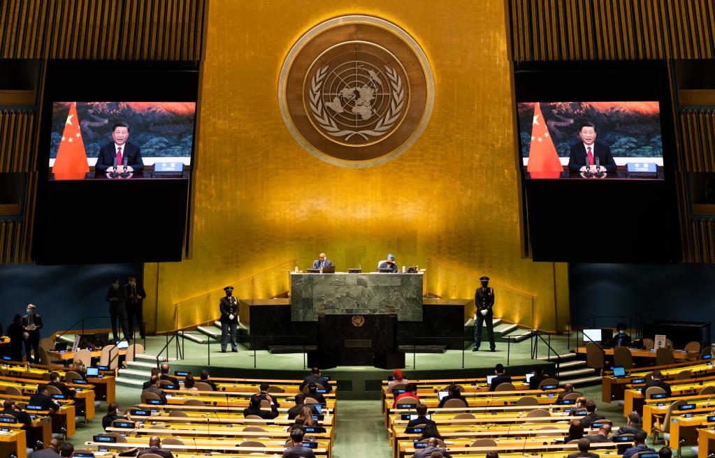 2021年9月21日,習近平在北京以視頻方式出席第七十六屆聯(lián)合國大會一般性辯論并發(fā)表重要講話。新華社記者王迎攝