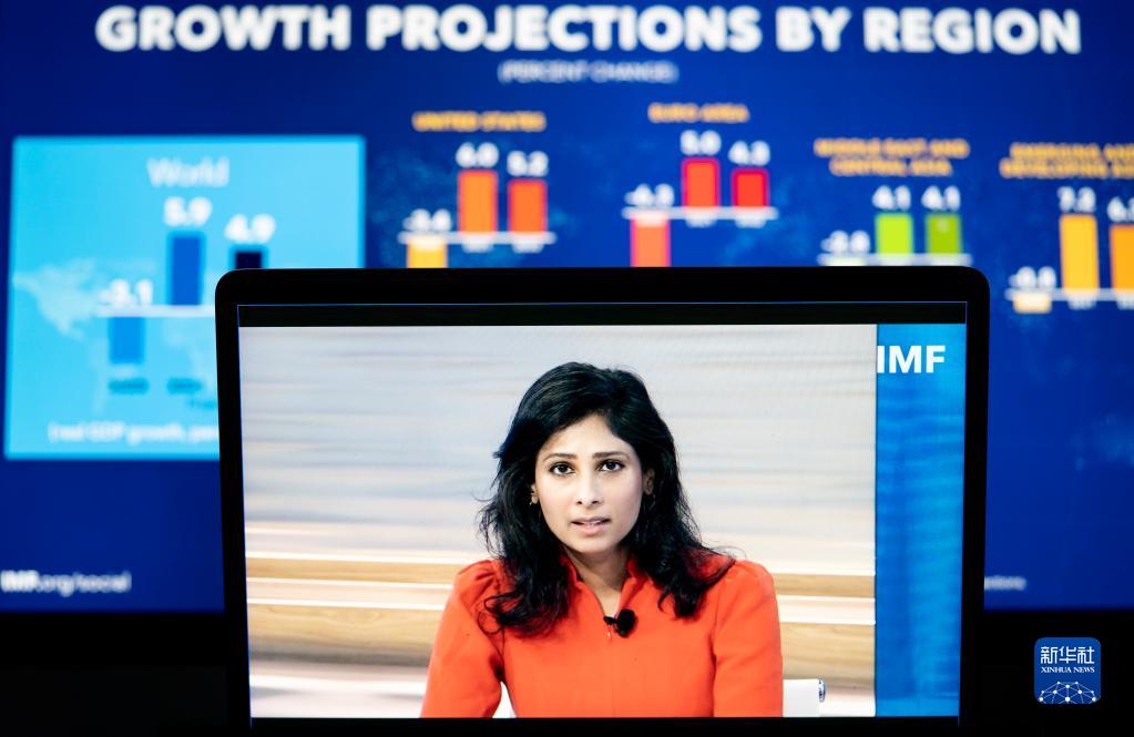 10月12日,國際貨幣基金組織(IMF)首席經濟學家吉塔·戈皮納特在美國華盛頓出席線上視頻新聞發(fā)布會。新華社記者 劉杰 攝