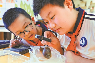 濱江東路小學(xué)學(xué)生在海珠濕地上勞動(dòng)教育實(shí)驗(yàn)課《常見的螺》。 廣州日?qǐng)?bào)全媒體記者駱昌威攝