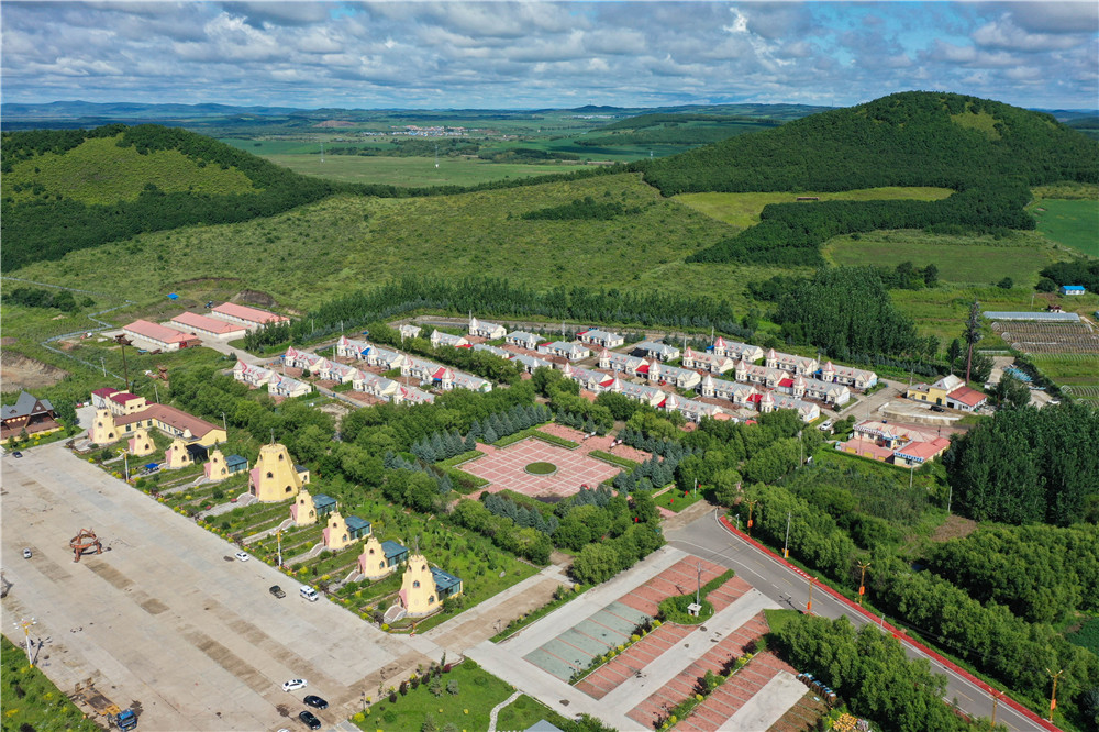 這是8月6日拍攝的鄂倫春自治旗大楊樹鎮(zhèn)多布庫爾獵民村(無人機(jī)照片)。新華社記者 劉磊 攝