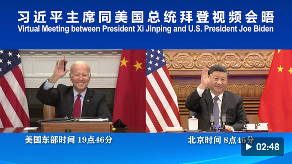 國家主席習近平16日上午在北京同美國總統(tǒng)拜登舉行視頻會晤。