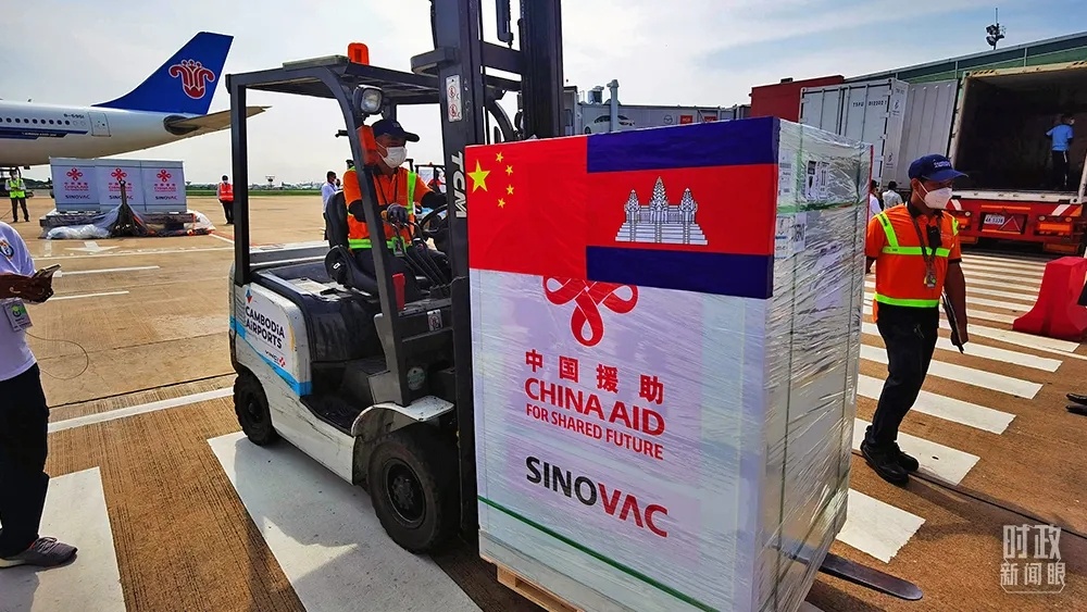 △2021年11月17日,柬埔寨金邊,中國援柬第七批新冠疫苗運抵。(圖/視覺中國)