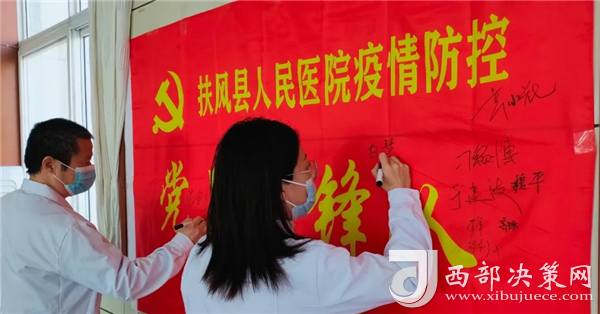 為全力做好汽車站疫情防控工作,院黨總支向全院黨員發(fā)出動員倡議書,職能、臨床內(nèi)科、臨床外科和醫(yī)技黨支部迅速響應(yīng),積極動員。11月23日下午,全體黨員在院多功能廳面對黨旗莊嚴(yán)宣誓:“自愿加入疫情防控黨員先鋒隊,堅決以行動譜寫忠誠,用實干詮釋擔(dān)當(dāng),堅守崗位,盡職盡責(zé),不畏懼、不退縮、不計得失,全力以赴阻擊疫情,守護(hù)人民群眾的生命健康”。隨后,院黨總支書記、院長馬忠科,副書記、副院長蘇長岐,支委委員王文輝、趙軒弘、張軍強(qiáng)、陳文博等院領(lǐng)導(dǎo)帶頭在先鋒隊隊旗上簽名許下了“愛的諾言”。