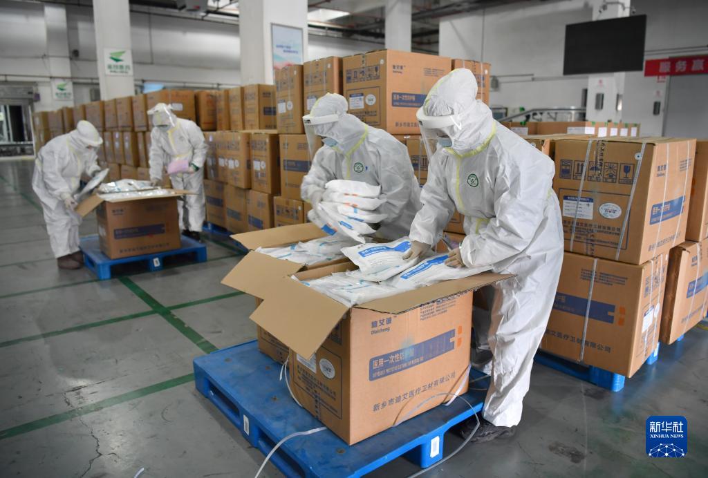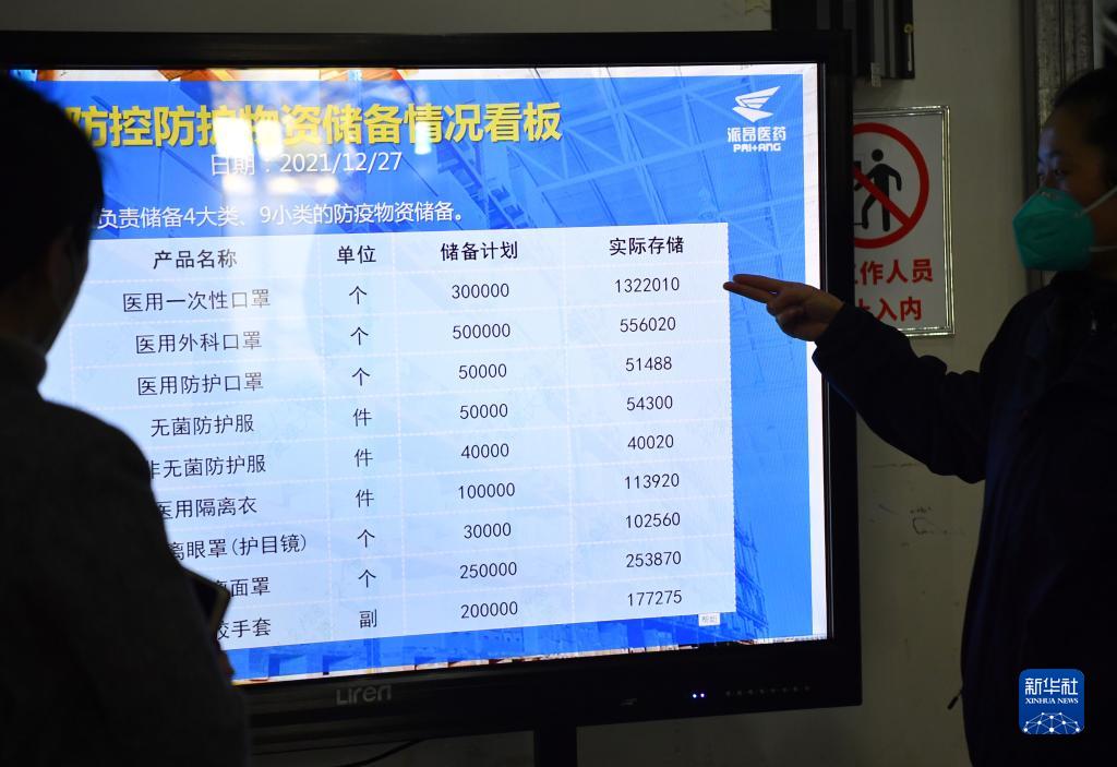 12月28日,陜藥集團(tuán)派昂醫(yī)藥公司工作人員在查看倉庫內(nèi)的疫情防控防護(hù)物資儲備情況。新華社記者 邵瑞 攝