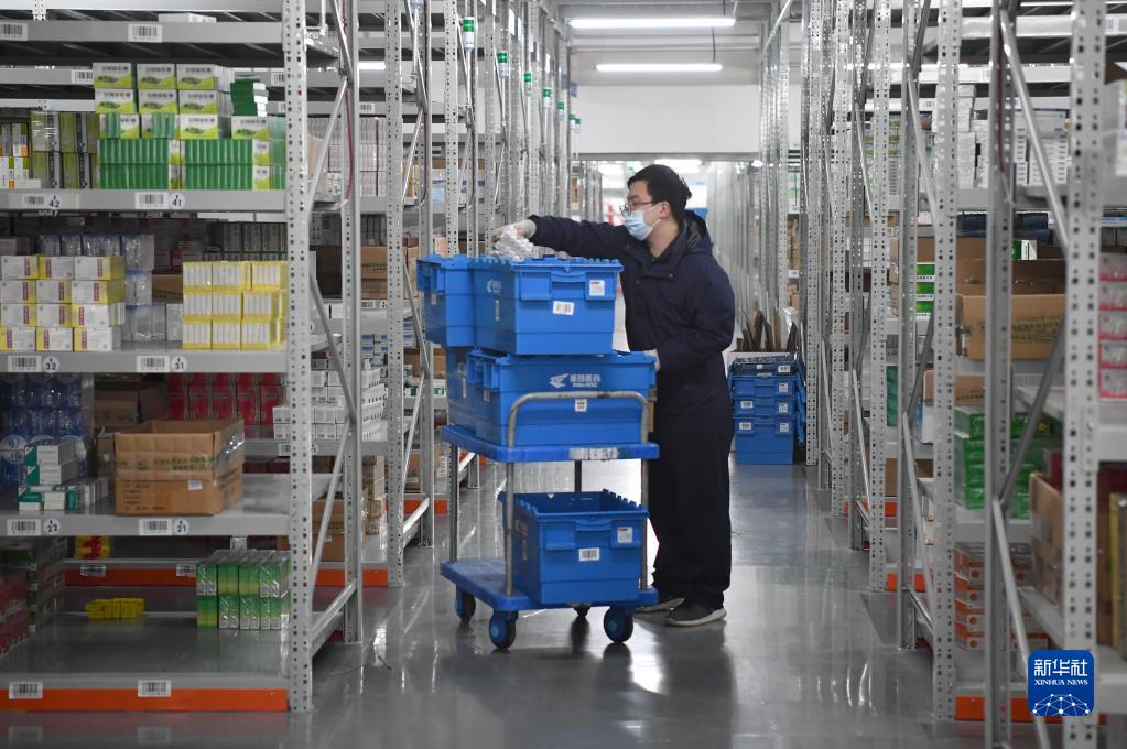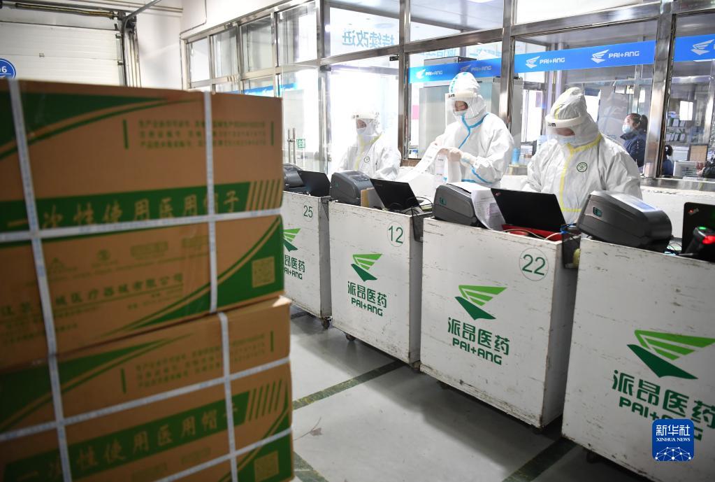 12月28日,陜藥集團(tuán)派昂醫(yī)藥公司工作人員準(zhǔn)備對藥品進(jìn)行派送。新華社記者 邵瑞 攝