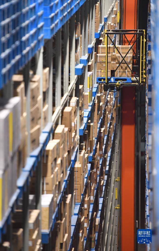在陜藥集團(tuán)派昂醫(yī)藥公司的立體庫內(nèi),藥品通過堆垛機(jī)入庫(12月28日攝)。新華社記者 邵瑞 攝