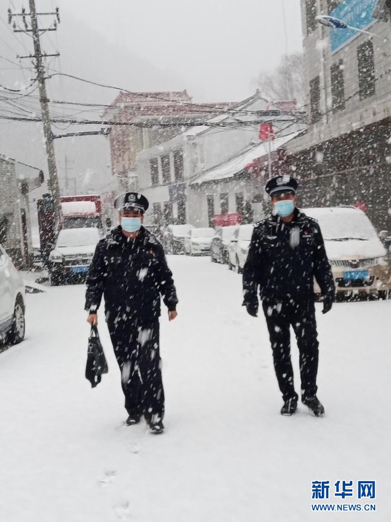 西安市周至縣板房子派出所民警彭軍(左)和馬高明正在去探望群眾的路上。(照片由周至縣公安局提供)