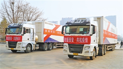 1月6日16時(shí),5輛懸掛愛(ài)心標(biāo)語(yǔ)、滿載愛(ài)心物資的貨車,從銀川市行政中心出發(fā)駛向西安。據(jù)了解,這些物資最快將在1月7日運(yùn)達(dá)西安市。