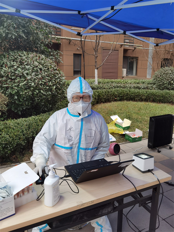 “我承諾:聽從黨的召喚,沖鋒在前,無私奉獻(xiàn)。”寒風(fēng)中,身著白色防護(hù)服的青年職工劉拓,在成為一名光榮的抗“疫”志愿者后,這位年輕的爸爸與9個(gè)月大的兒子每天相處時(shí)間極少。為了守護(hù)西安這座城,他把不到1歲的兒子交由父母照顧,自己義無反顧加入到抗“疫”志愿服務(wù)中。劉拓所在的航天基地啟航路社區(qū)大華錦繡前程小區(qū)為管控區(qū),他每天主要負(fù)責(zé)1500人次的核酸檢測(cè)信息登記、樓棟封控及困難群眾摸排、隔離戶消殺記錄巡查、生活物資分發(fā)等工作。為了能打贏這場(chǎng)疫情阻擊戰(zhàn),他每天都是起早貪黑,再苦再累也不怕。當(dāng)摸排的隔離戶老人對(duì)他細(xì)心叮囑:“娃,你也要注意安全,讓家里人別操心。”,當(dāng)見到隔著窗戶對(duì)他喊“叔叔加油!西安加油!”的小男孩等這些溫暖瞬間時(shí),劉拓分外感動(dòng)。“有一分光,便發(fā)一分熱,我們青春抗疫,志愿無悔。在這場(chǎng)沒有硝煙的戰(zhàn)場(chǎng)上,人人都是參與者,人人皆是戰(zhàn)斗員。相信在大家共同努力下,我們一定會(huì)取得戰(zhàn)‘疫’的最終勝利!”劉拓這樣說。