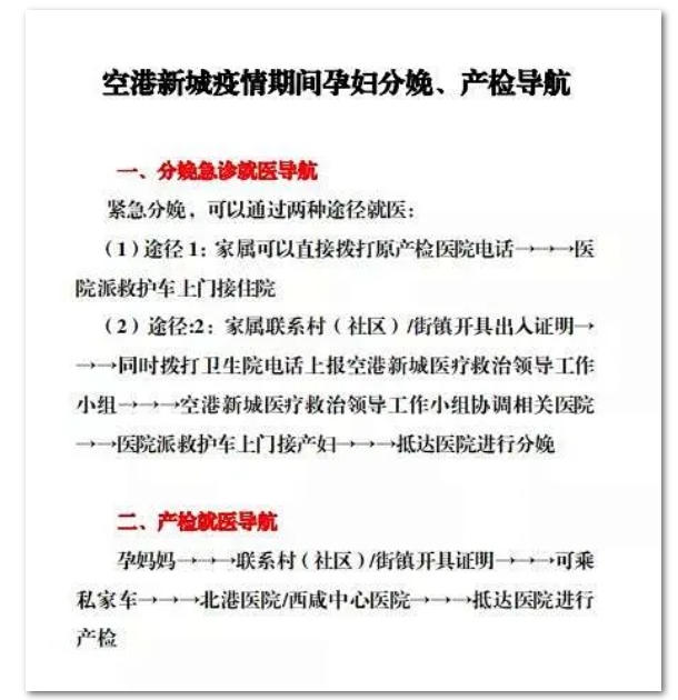 為了便于孕媽媽們更系統(tǒng)的了解就診流程,胡偉超還會同北杜衛(wèi)生院吳新雷,醫(yī)療救治工作領(lǐng)導(dǎo)小組張亮、呂琳連夜制作了《空港新城疫情期間孕婦分娩、產(chǎn)檢導(dǎo)航》,詳細(xì)介紹各類情況的流程。