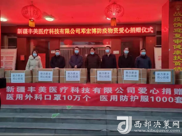 西部決策網(wǎng)訊 1月7日,在陜西省扶風(fēng)縣委政法委的組織協(xié)調(diào)下,新疆豐美醫(yī)療科技有限公司防疫物資捐贈(zèng)儀式在扶風(fēng)縣衛(wèi)健局辦公樓前舉行。扶風(fēng)縣委副書(shū)記張湛林,縣委常委、政法委書(shū)記張萬(wàn)鋒出席捐贈(zèng)儀式。