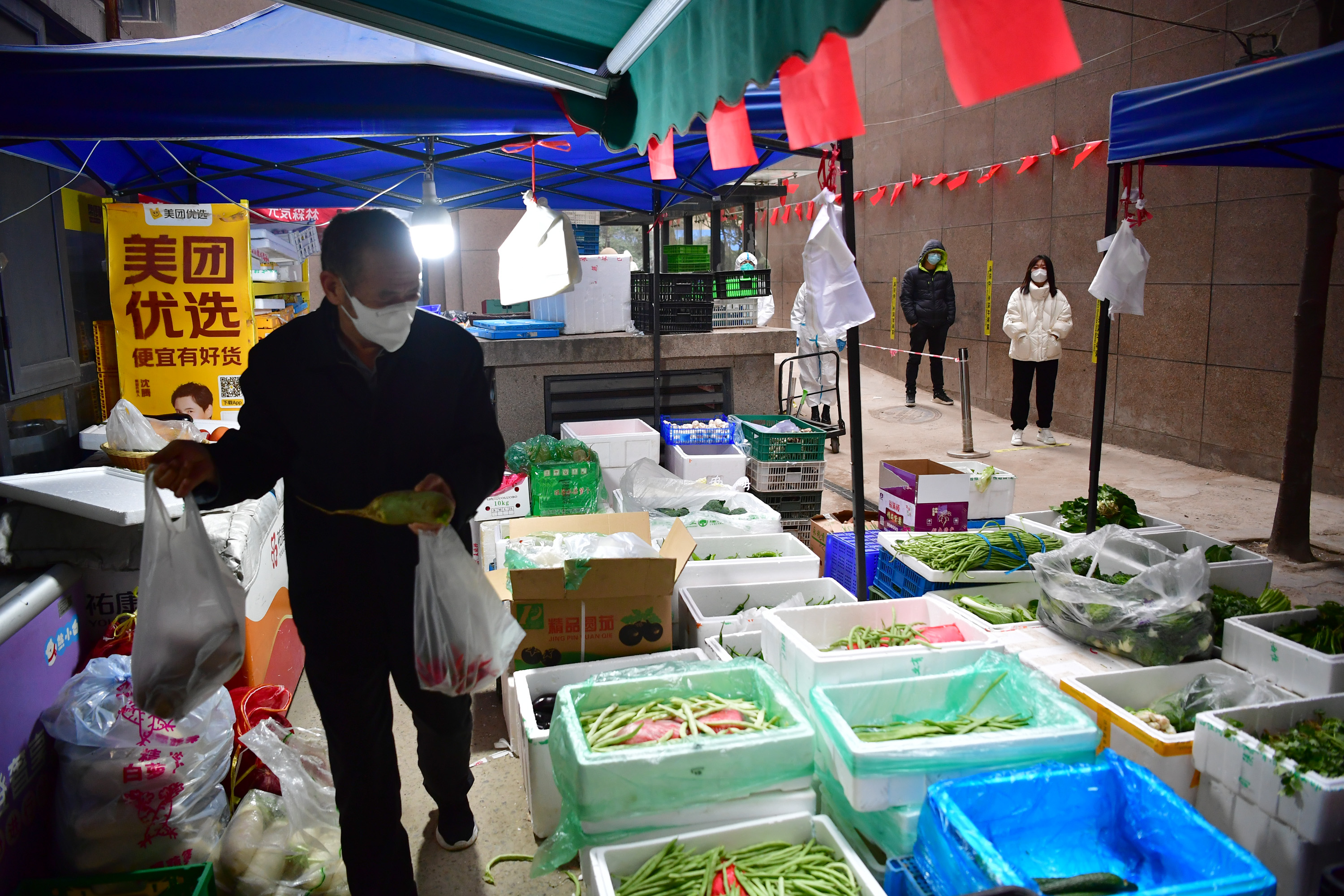 1月7日,居民在陜西西安曲江新區(qū)一小區(qū)便利店外選購(gòu)菜品。新華社記者邵瑞 攝