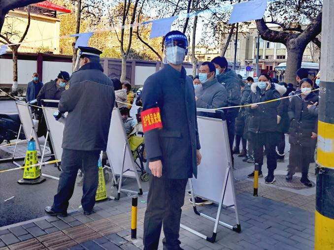 自從12月21日至今,王曉軍幾乎天天深入抗疫一線,以志愿者的身份助力抗疫,從未休息過一天,什么工作都干過,上門核實(shí)業(yè)主家里的人員情況,最近是否都做了核酸,綠碼顯示情況,是否還出去上班,是否有生活困難等等一系列繁瑣細(xì)微的工作,作為總經(jīng)理他在公司運(yùn)籌帷幄,雷厲風(fēng)行,而在這里,他俯首甘為孺子牛,輕輕地敲開萬戶門,耐心詢問,認(rèn)真登記,毫無差漏。小區(qū)巡查時(shí),勸導(dǎo)業(yè)主回家不要下樓,遇到家里有生活方面困難的業(yè)主時(shí),了解情況后勸導(dǎo)回家等侯,然后聯(lián)系物業(yè)或社區(qū)或民警協(xié)調(diào)處理,給業(yè)主回復(fù)。小區(qū)門口值班時(shí),對(duì)進(jìn)出人員嚴(yán)加詢問,除防疫工作人員及民生保障人員持身份證、單位證明、疫情防控指揮部辦公室的證明人員外,一律不許出入,對(duì)門口交接生活保障物資的人員,通過專用通道,保持3米距離,并對(duì)物品進(jìn)行嚴(yán)格酒精消殺,杜絕出現(xiàn)交叉感染。核酸篩查現(xiàn)場(chǎng)維護(hù)秩序時(shí),看到年邁的老者,就主動(dòng)向前扶一把,幫助老人提前插隊(duì)做;遇到打不開綠碼的,就親自幫人操作;遇到間距拉近的就讓他們分開......一天下來嗓子都喊啞了,從21日開始至今,一共進(jìn)行了10輪核酸篩查,他從未缺崗。防護(hù)服不透氣,身上一會(huì)兒熱一會(huì)兒冷,自己本來就戴著一副眼鏡,再加上一個(gè)面罩,外寒內(nèi)熱,眼睛一整天都是模糊的,一天下來腰酸背痛,何況天天如此。在數(shù)九寒天,在危險(xiǎn)面前如果沒有一種精神力量做支撐,普通人恐怕一天也難以堅(jiān)持。我也做過志愿者,穿過傳說中的防護(hù)服,僅僅五個(gè)小時(shí)我都快崩潰了,幸好工作結(jié)束,否則我可能要請(qǐng)假了,所以我感同身受志愿者的艱辛和不易。