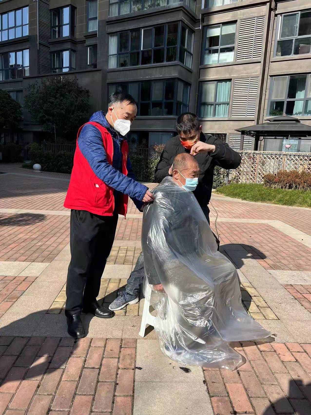 當(dāng)天,在做好疫情防控的情況下,三位理發(fā)師小伙子整整工作了一天,為小區(qū)里的老人、孩子等70多位進(jìn)行了愛心義剪。