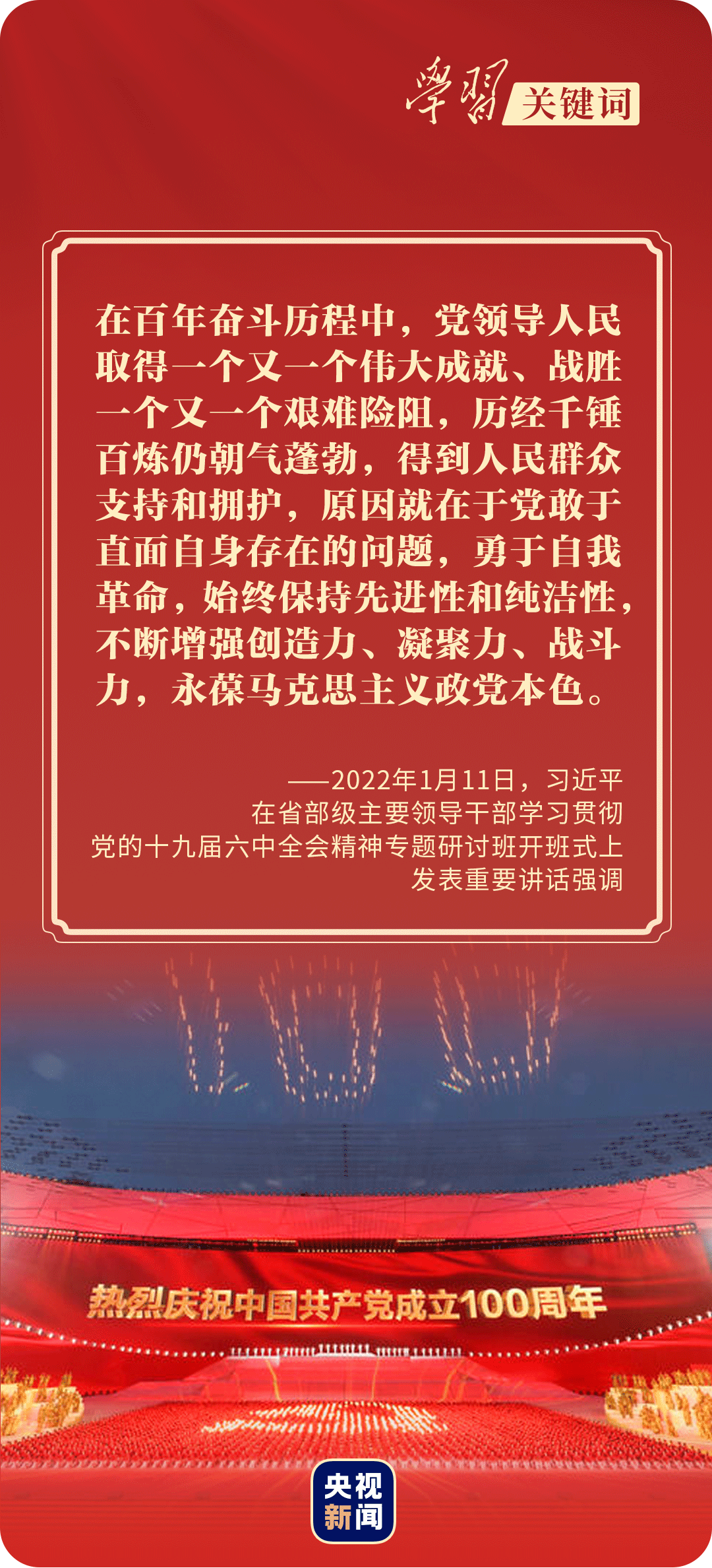 2021年歲尾,中央紀(jì)委國(guó)家監(jiān)委網(wǎng)站聯(lián)合國(guó)家語言資源監(jiān)測(cè)與研究中心,推出2021年度十大反腐熱詞,“自我革命”就是其中之一?!吨泄仓醒腙P(guān)于黨的百年奮斗重大成就和歷史經(jīng)驗(yàn)的決議》將“堅(jiān)持自我革命”作為中國(guó)共產(chǎn)黨百年奮斗的歷史經(jīng)驗(yàn)之一,要求全黨必須銘記生于憂患、死于安樂,常懷遠(yuǎn)慮、居安思危,繼續(xù)推進(jìn)新時(shí)代黨的建設(shè)新的偉大工程。