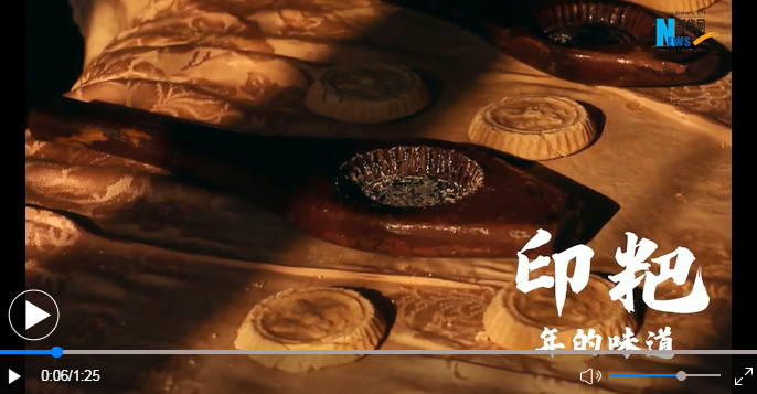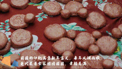 用刻有“福、祿、囍、壽”等字的印模壓印粑