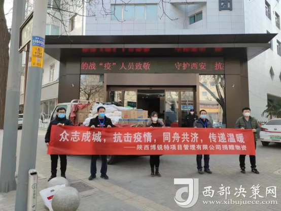 西部決策網(wǎng)訊 西安疫情形勢嚴(yán)峻復(fù)雜,牽動著無數(shù)人的心。1月18日下午,陜西博銳特項目管理有限公司為西安市雁塔區(qū)城市發(fā)展投資控股集團(tuán)有限公司捐贈600多份生活物資。由于疫情管控影響,人員不得外出,物流運輸中斷,給防疫物資籌備和轉(zhuǎn)運造成極大困難,博銳特以實際行動踐行了企業(yè)的社會責(zé)任和擔(dān)當(dāng),助力西安打贏疫情防控攻堅戰(zhàn)。