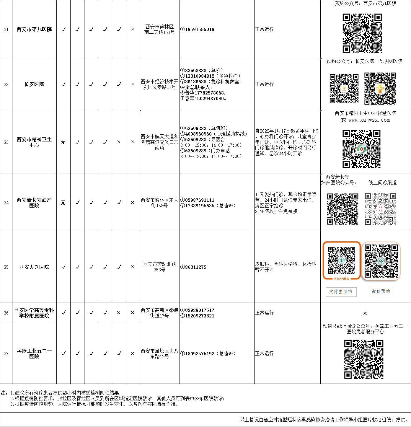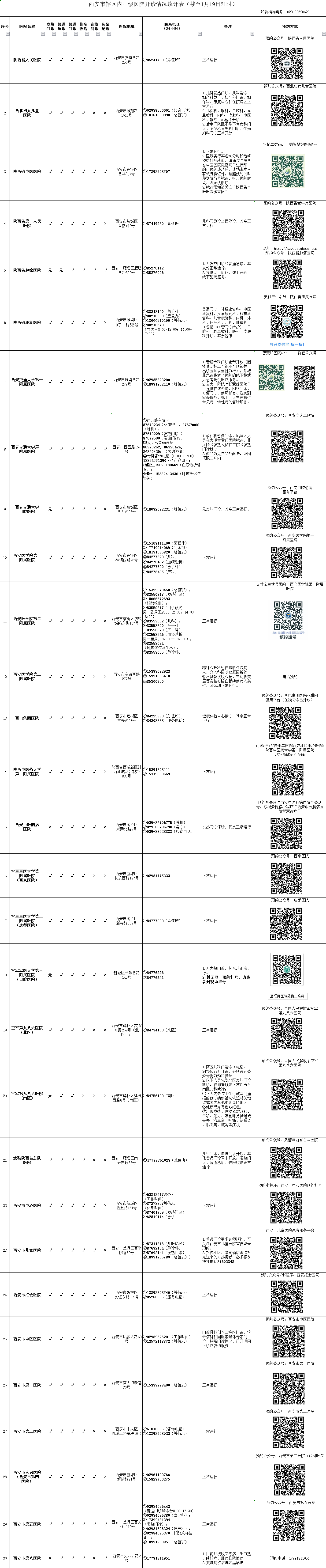 最新!西安市轄區(qū)內(nèi)三級(jí)醫(yī)院開診情況統(tǒng)計(jì)表(截至1月19日21時(shí))