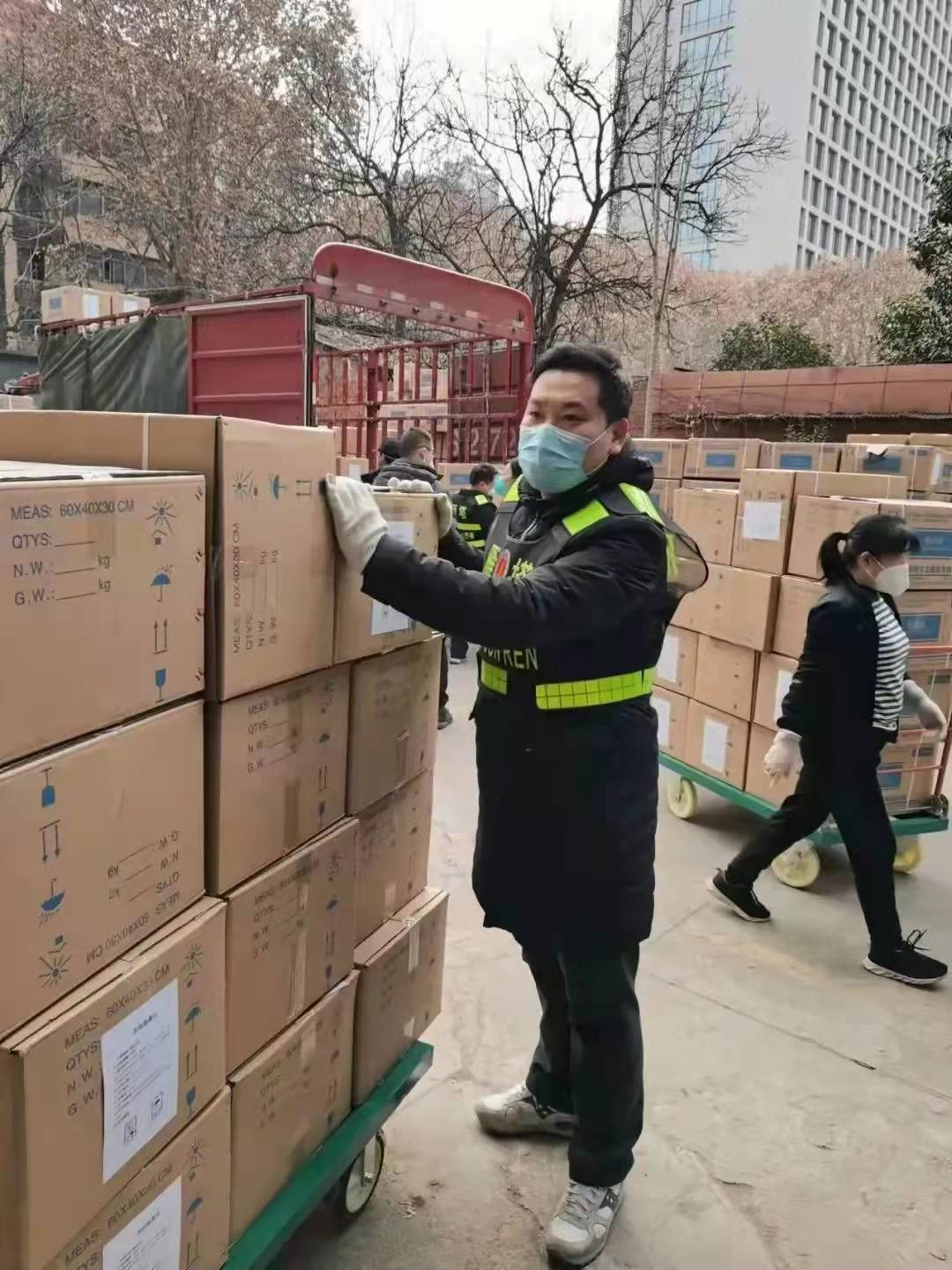 在雁塔區(qū)防疫物資保障中心,耿毅和18名志愿突擊隊(duì)隊(duì)員共同負(fù)責(zé)搬運(yùn)物資工作。搬運(yùn)是個(gè)力氣活,每天從四面八方匯集而來的物資更是源源不斷。只要有物資運(yùn)來,他們便立即進(jìn)入戰(zhàn)斗狀態(tài),爬上一輛輛大卡車,將物資一箱箱從車上卸下來,分門別類整理好,再搬到指定庫房或區(qū)域。由于各類物資抵達(dá)的時(shí)間不固定,耿毅他們幾乎是全天候待命。天氣雖然寒冷,但一天工作下來,志愿者們卻忙得直冒汗。