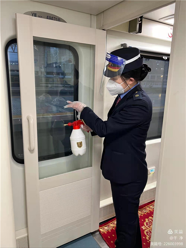 西部決策網(wǎng)訊 正值春運(yùn)期間,在當(dāng)前疫情防控的嚴(yán)峻形勢下,西安客運(yùn)段上海一隊上海十組疫情期間一直堅守在一線工作崗位上,帶領(lǐng)班組積極響應(yīng)各項工作部署,嚴(yán)格執(zhí)行集團(tuán)公司和西安客運(yùn)段疫情防控工作要求,做好列車上的日常消毒、測量體溫等工作,確保疫情防控萬無一失。