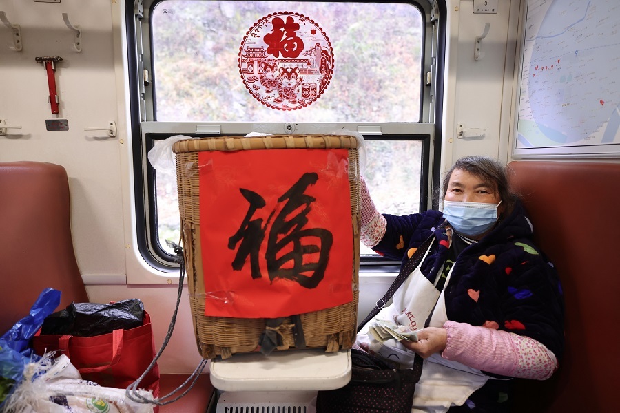 列車到達(dá)略陽車站前,早早在車門口等候下車的乘客劉大姐對準(zhǔn)備打開車門組織乘降的列車員衛(wèi)進(jìn)忠開心地說:“今天這趟沒白跑,收到了小慢車送的對聯(lián)和福字,這個(gè)年真是吉祥,謝謝你們!”“每年我們都會(huì)在小年為老鄉(xiāng)們送上新年祝福,大家的致富路上,小慢車一直都在,從不會(huì)缺席。”衛(wèi)進(jìn)忠說。