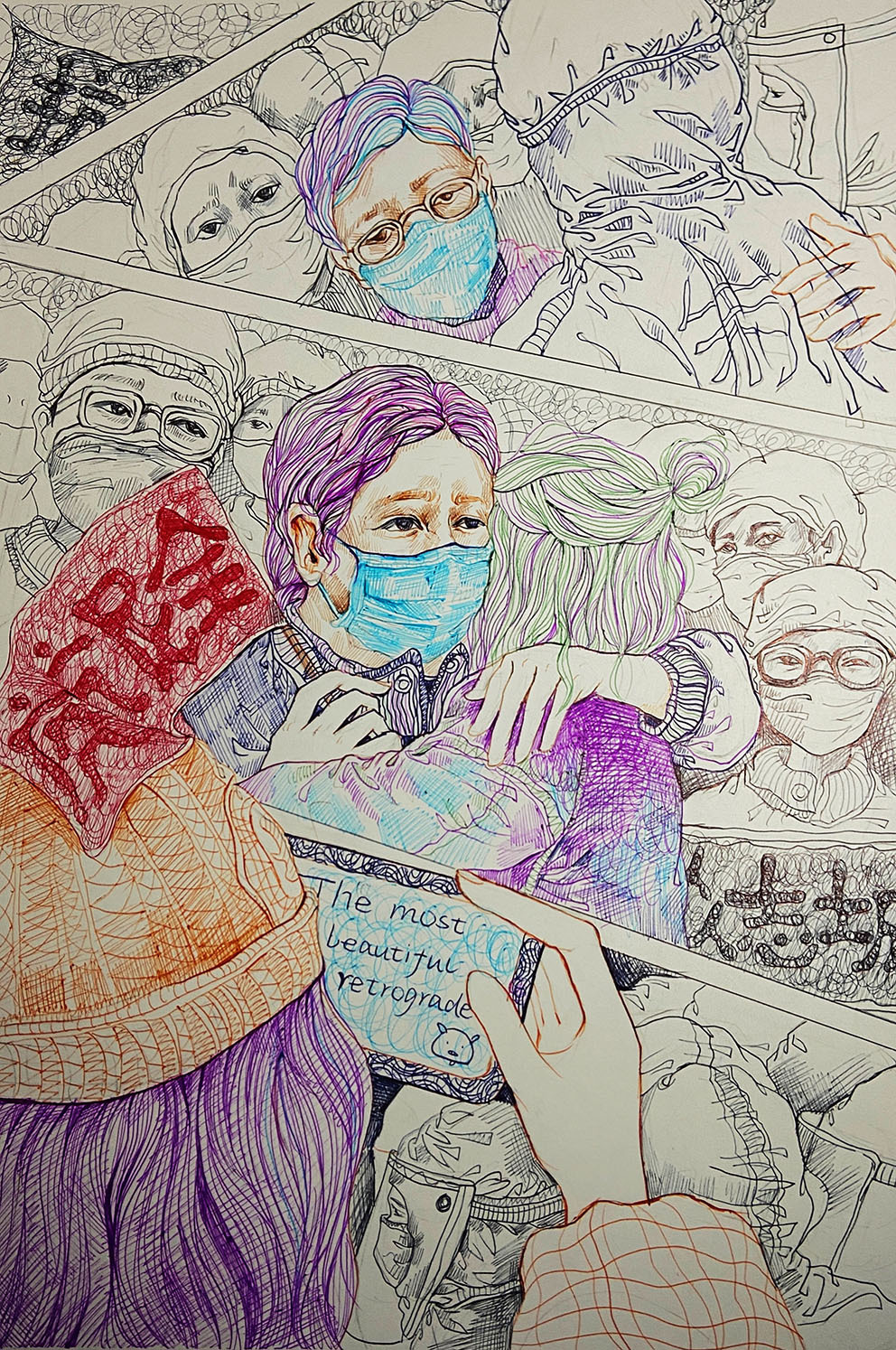 2021年12月,新冠肺炎疫情在西安突然暴發(fā),面對(duì)突如其來的疫情和嚴(yán)峻復(fù)雜的防控形勢(shì),在加強(qiáng)落實(shí)疫情防控、保障師生健康的同時(shí),西安工程大學(xué)服裝與藝術(shù)設(shè)計(jì)學(xué)院積極應(yīng)對(duì),組織全院師生有序、規(guī)范開啟2021年秋季期末課程結(jié)課的線上教學(xué)。任課教師及時(shí)調(diào)整結(jié)課作業(yè)主題,充分利用視覺傳達(dá)設(shè)計(jì)專業(yè)特點(diǎn),組織同學(xué)們嚴(yán)謹(jǐn)認(rèn)真、激情飽滿地用畫筆以藝抗疫,致敬最美逆行者!