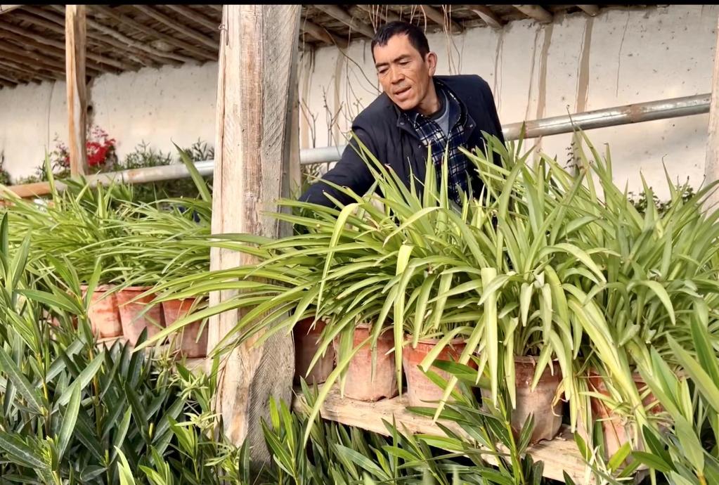 寒冬臘月,室外氣溫達(dá)零下10多攝氏度,奧圖拉庫(kù)勒達(dá)西村農(nóng)民艾力·艾合買提家前院450平方米的大棚里,卻是春意盎然,20多種花卉苗生機(jī)勃勃。“現(xiàn)在南疆農(nóng)村老百姓很喜歡買花擺在家里,像這種艾德萊斯花、每日春、蘆葦花,賣得特別好。”他告訴記者,今年打算繼續(xù)擴(kuò)大花卉品種。