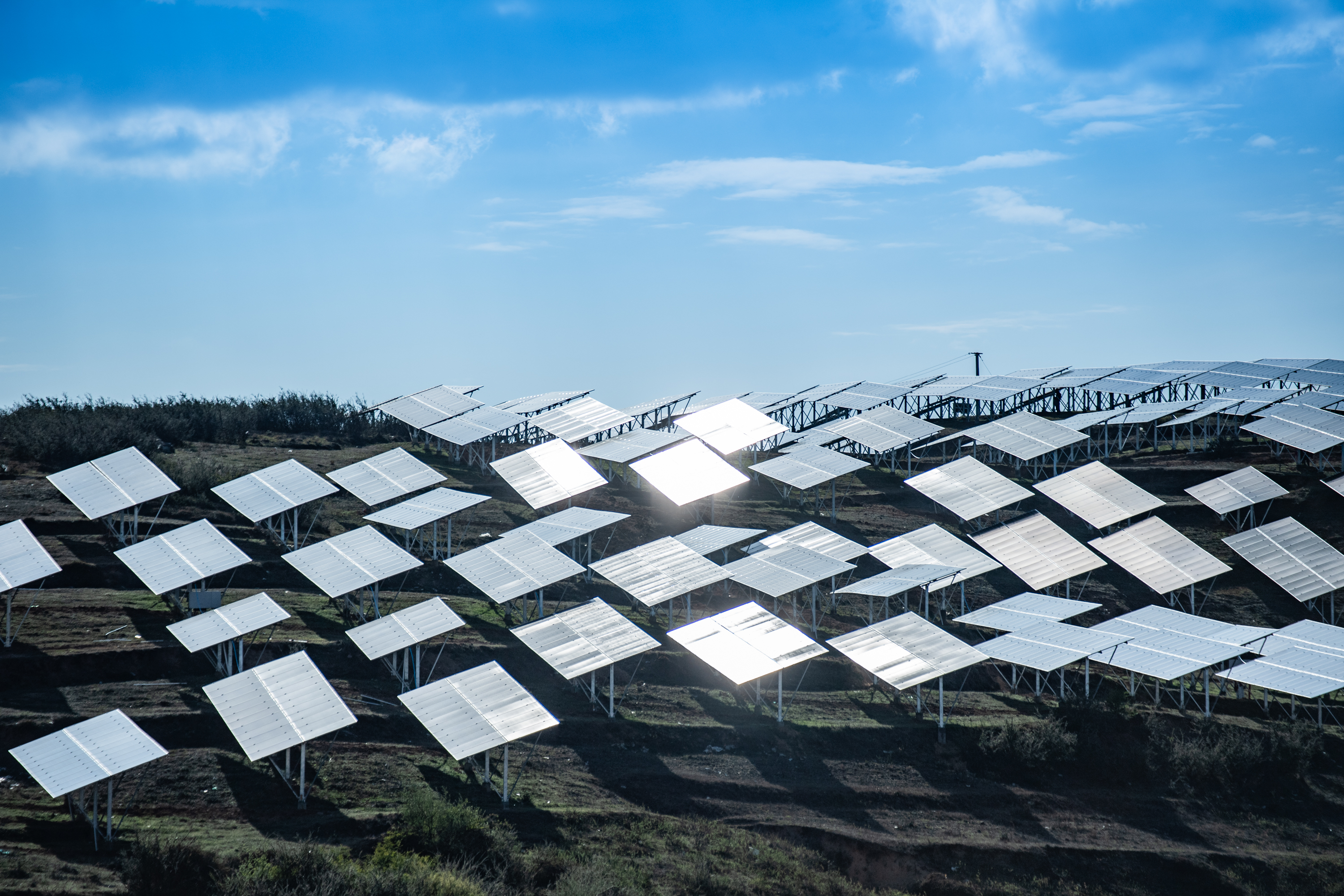 貴州金元集團威寧龍場農(nóng)業(yè)光伏電站的光伏發(fā)電板(2020年4月26日攝)。新華社記者 陶亮 攝