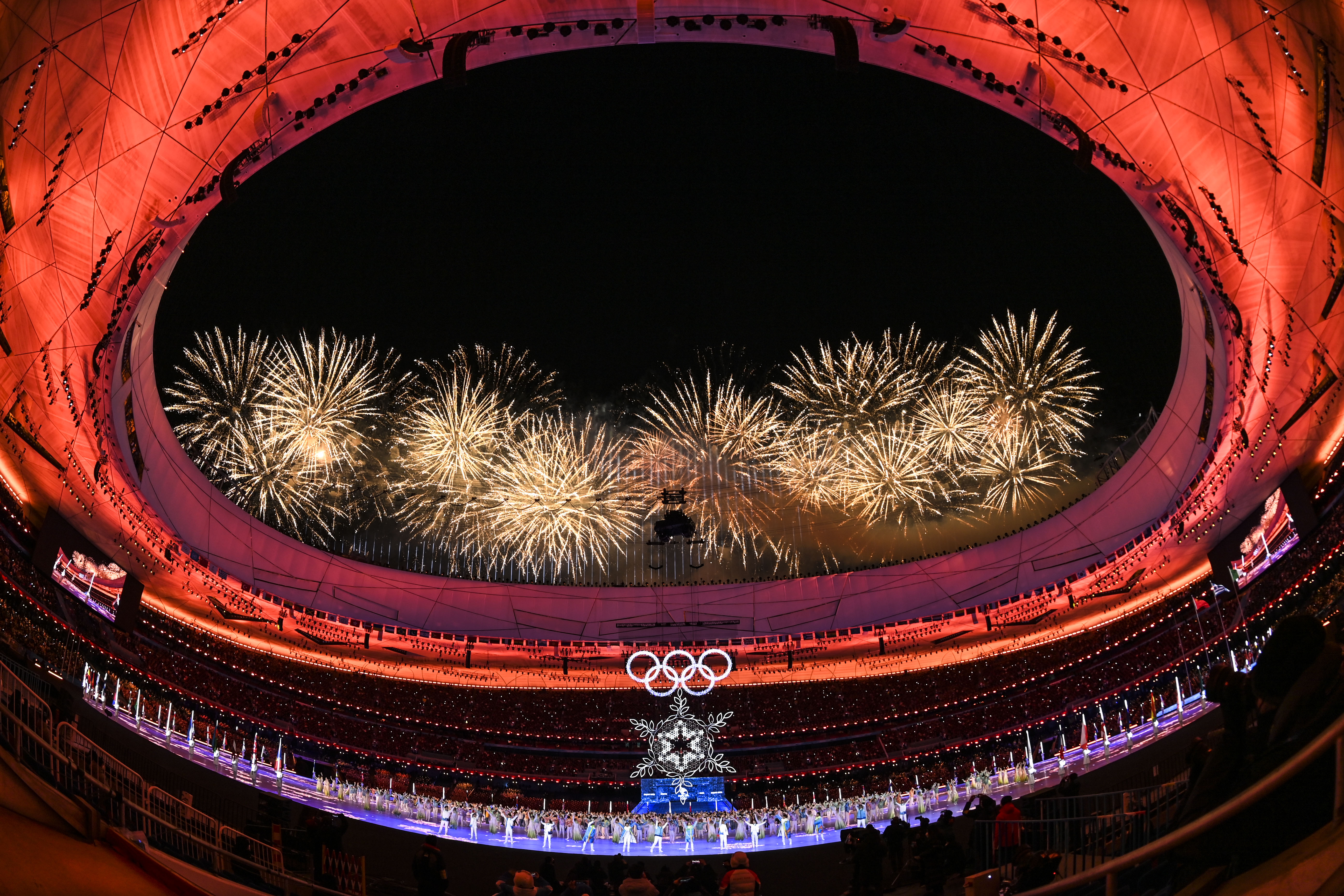 2月4日,冬奧開幕,恰逢立春。國家體育場再次迎來“高光時刻”,夜幕下的“鳥巢”美輪美奐、流光溢彩,充滿中國韻味的“二十四節(jié)氣”創(chuàng)意倒計時影像、“黃河之水”幻化出的“冰雪五環(huán)”、象征團結(jié)共贏的“大雪花”……開幕式上的中國式浪漫驚艷世界。